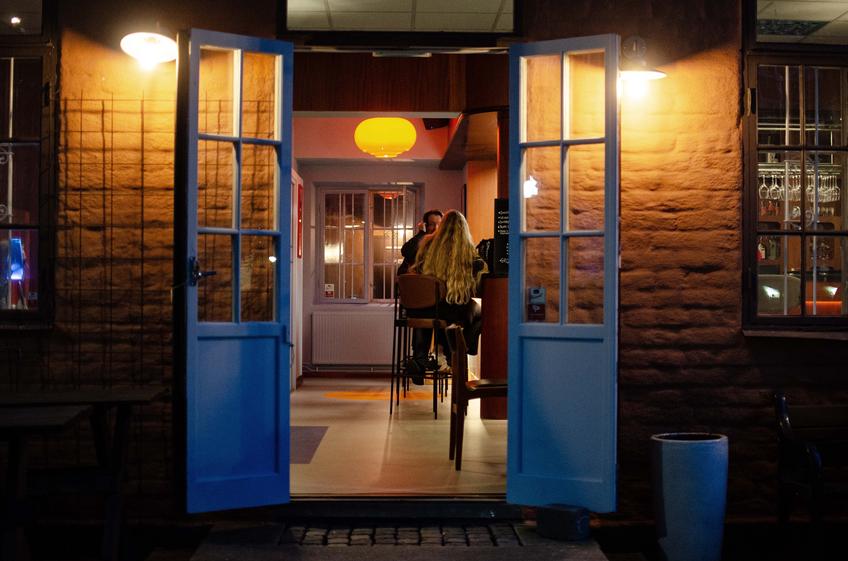 Hela Ingmar Bergmans Torg är zonat som uteservering. Vårt tillstånd gäller året runt. Så snart solen tittar fram ställer vi ut stolar och bord. I år har vi tillstånd för 120 platser.